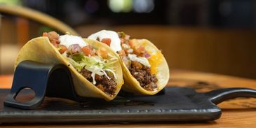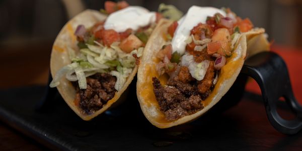 grilled corn tortilla, melted yellow cheddar, nacho spiced ground beef, ranchero sauce, pickled jalapeno, shredded lettuce, pico de gallo, lime sour cream. 2 each.